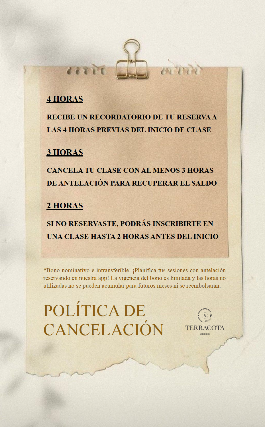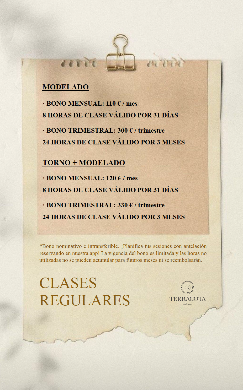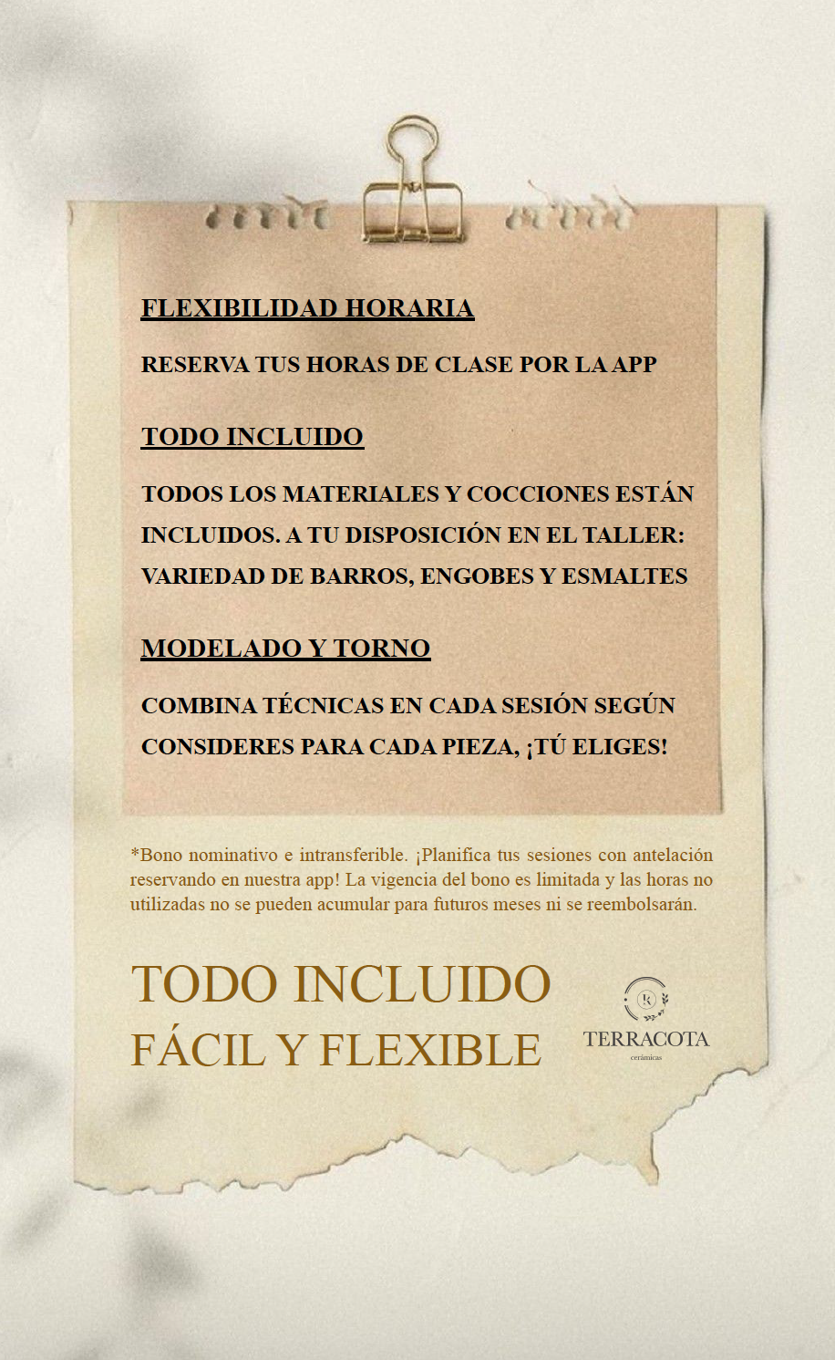 Todo incluido: en los bonos se incluye todo el material necesario y las cocciones de las piezas hechas en clase.